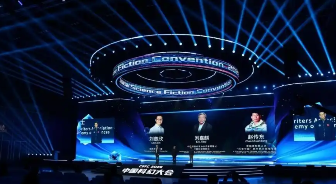 联合国教科文组织国际创意与可持续发展中心咨询委员会主席汉斯·道维勒在大会上发言。开幕式全面回顾了大会10年发展历程和建设成果,发布《2026中国科幻产业报告》,展示全国特色科幻应用场景,展演科普科幻新片,呈现前沿科技成果。大会还邀请中国科学院院士刘嘉麒、中国首批航天员赵传东和科幻作家刘慈欣进行跨界对话。