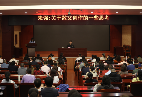 讲座中,朱强还与学员分享了他对散文创作的心得体会。他说,灵感源于生活,语言需精炼而有质感,题材贵在新意,结构应形散神聚。他强调,写作是修行,是在天地人之间寻找坐标。只要情感真诚、语言凝练、结构合理、视角独特,散文便能成为打动人心的佳作。
