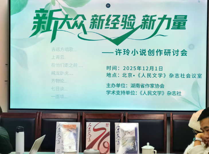 2025年12月1日下午,由湖南省作家协会主办、《人民文学》杂志社提供学术支持的“新大众、新经验、新力量——许玲小说创作研讨会”在《人民文学》杂志社举行。湖南省作协党组书记胡革平,《人民文学》主编徐则臣,以及贺绍俊、丛治辰、徐刚、宋嵩、行超、刘诗宇、樊迎春、陈泽宇、刘汀、石韫奇、贺秋菊、崔沁峰等知名评论家、编辑、学者齐聚一堂,对一位从生活深处走出的湖南青年作家进行集中审视,更是对当下“新大众文艺”命题如何落地于具体创作实践、探索新时代文学路径进行了热烈的探讨。研讨会由《人民文学》副主编邓凯主持。